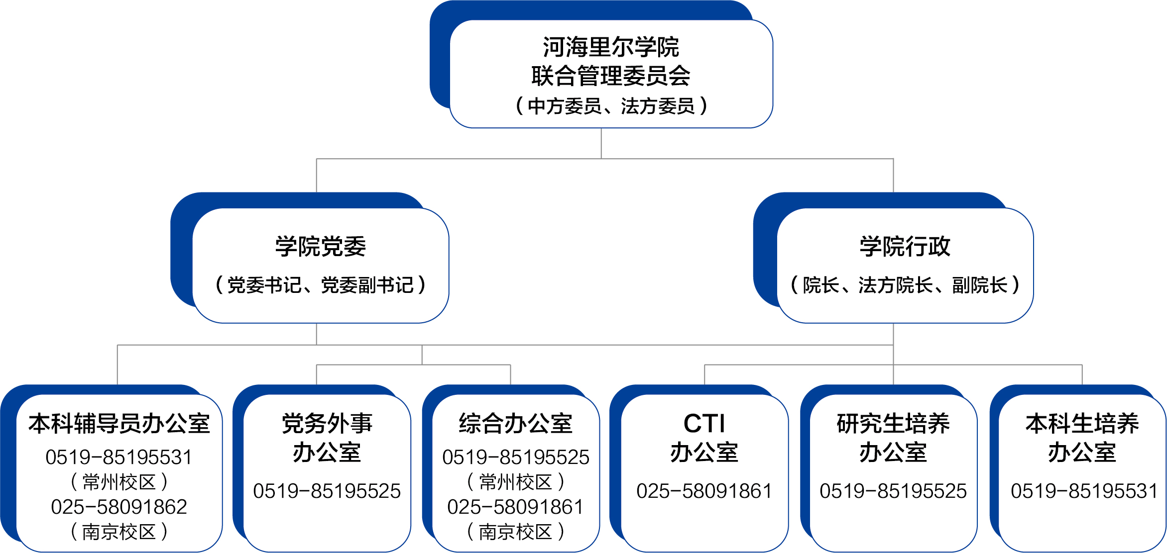 学院管理机构为联合管理委员会,由中法双方人员共同组成,联合管理委员会定期召开会议,负责对ok138cn太阳集团529建设和运行中的重大事项进行管理与决策。学院下设六个科室:综合办公室、CTI办公室、党务外事办公室、研究生培养办公室、本科生培养办公室、本科辅导员办公室,负责落实学院运行具体工作。