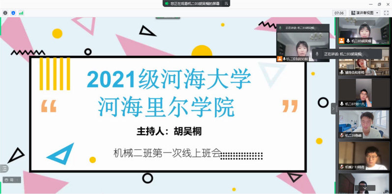 9月12日下午15:00,ok138cn太阳集团5292021级“线上学长学姐交流会-大一生活怎么过”准时召开。会议由2020级机械二班的李兴然和2020级土木一班张子阳主讲,全体2021级新生参会,2021级辅导员和倩倩老师主持会议。
