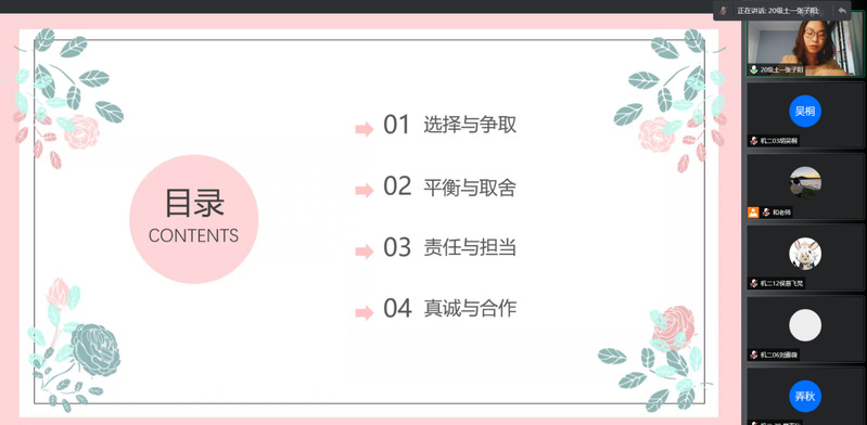 9月10日上午9:40,各班线上班会通过腾讯会议准时召开,2021级辅导员和倩倩老师和2021级各班学生参会,各班临时班长主持会议。