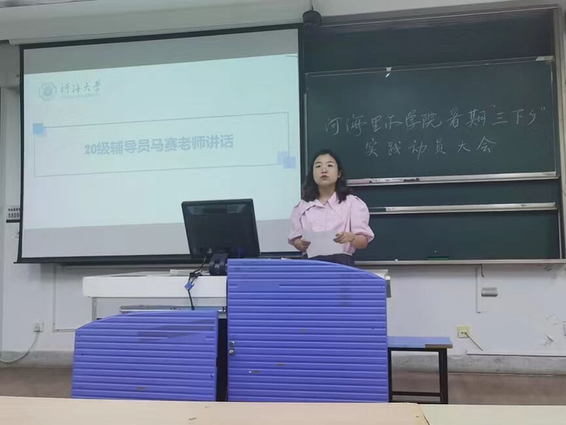 首先,马赛老师向大家发起动员、提出实践倡议。她希望同学们紧紧围绕“喜迎二十大、永远跟党走、奋进新征程”实践主题,明晰实践目的,在保证安全的前提下丰富暑假生活。同时,她代表学院团委向同学们发出“国家水网打卡一张图”倡议,鼓励同学们了解国家水网工程,共同绘制水网地图。