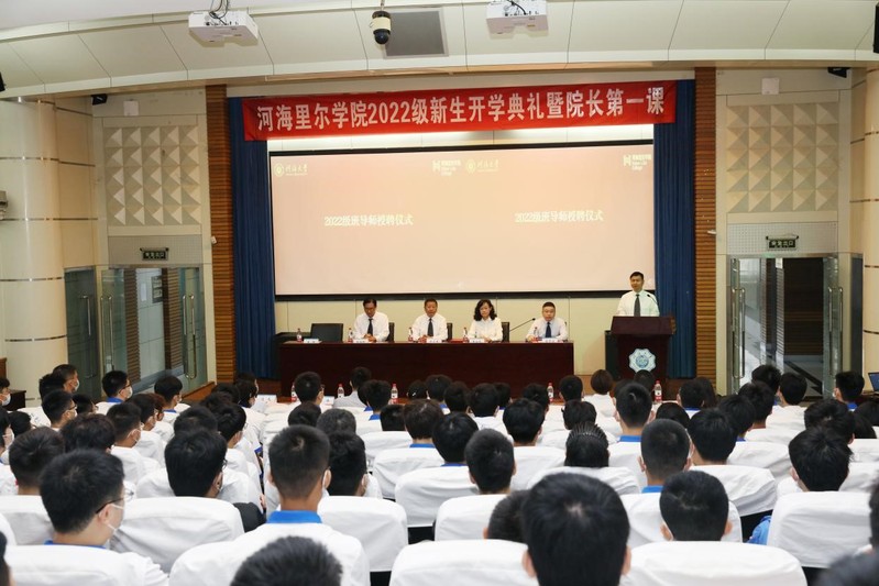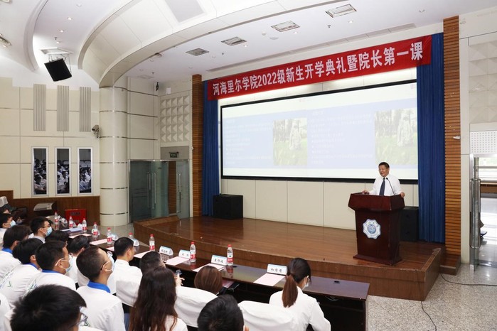开学典礼在庄严的《中华人民共和国国歌》歌声中拉开帷幕。学院党总支王永芝书记致欢迎词,王书记代表全院师生员工向新生表示热烈欢迎,并向培养和支持新生的家长和老师们表示衷心的感谢。王书记对新生提出了三点建议:要涵养高尚品格、要锤炼过硬本领、要不负青春韶华,她希望同学们秉承“艰苦朴素、实事求是、严格要求、勇于探索”的河海校训精神,不负期待,勇敢追梦,在青春的赛道上奋力奔跑,在ok138cn太阳集团新百年的征程中留下奋斗的足迹。