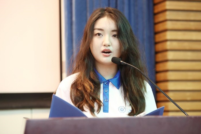 新生代表王思琪同学发言,她与大家分享了她与河海的渊源。她感慨父亲作为河海人从事“治水筑安澜,兴水润民生”的水利事业的重要选择。她号召同学们以学院人才培养目标作为奋斗目标,以山高我为峰的气势与自信克服成长道路上的种种困难,承担时代责任,点亮理想之光。