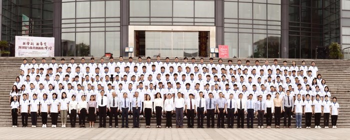 开学典礼之前,全体院领导、相关学院领导、授课教师代表、班导师等与全体新生合影留念。