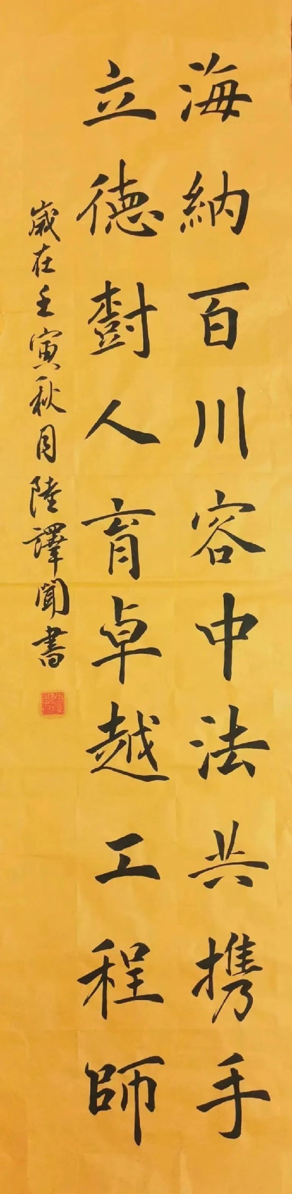 作品内容:海纳百川容中法共携手,立德树人育卓越工程师。