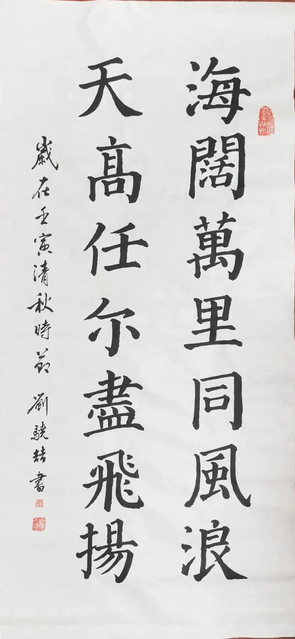 作品内容:海阔万里同风浪,天高任尔尽飞扬。