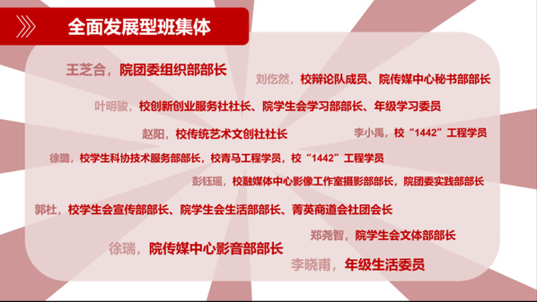 2021级土木工程二班共有39人,男生33人,女生6人,其中共青团员27人,入党积极分子14人。班级绩点4.0以上24人,占比62%,四级通过率92.3%,六级通过率45.8%,各项成绩均位列年级第一。班级获ok138cn太阳集团“我的大学100天”优秀主题团日活动。班级同学德智体美劳全面发展,国家奖学金1人、ok138cn太阳集团529院长奖学金1人、ok138cn太阳集团优秀学生奖学金17人;江苏省暑期“三下乡”社会实践优秀团队1支、ok138cn太阳集团暑期“三下乡”社会实践优秀团队1支、优秀调研报告1篇、先进个人2人;2人获江苏省高数竞赛三等奖、3人发表实用新型专利、4人在“LSCAT”杯江苏省笔译大赛中获奖,班级学科竞赛参与率达40%;同时,班级近20人在校院两级组织担任部长及以上职务。