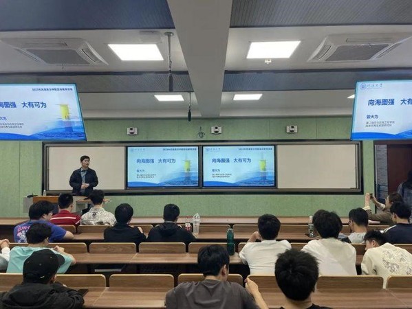 会议中,管大为老师以“向海图强,大有可为”为题,分享了他在海洋科研领域的研究经历。管老师将科学研究与国家战略需求相结合,将研究成果应用于实际工程中,以科研服务重大工程,取得了重大成果。最后,管老师鼓励同学们积极参与各项实践活动、科研项目,将校训落实到自己的学习生活中,在实际行动中弘扬劳动精神、践行劳动精神。