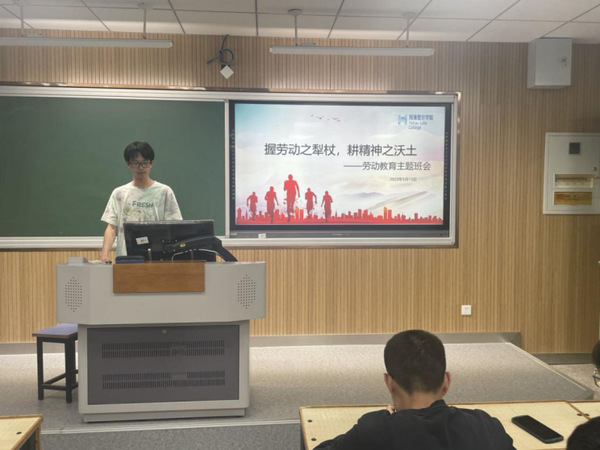 为加深同学们对劳动精神的感悟,513日下午,学院开展“握劳动之犁杖,耕精神之沃土”劳动主题班会。