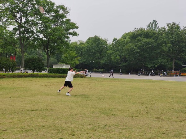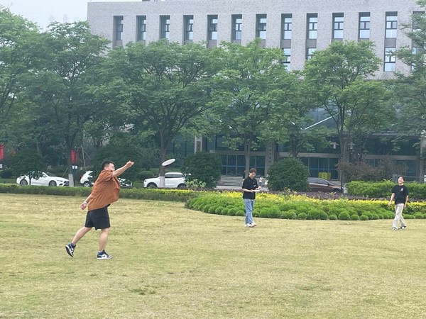 带着成品,各小组来到图书馆草坪前,开始了初次飞盘体验。在活动负责人对飞盘游戏进行讲解后,各小组开始了游戏比拼,分别进行了抛接竞赛、目标圈投掷、接力计时任务小组对抗赛。大家在投掷和奔跑中享受肆意的快感、释放许久的压力。