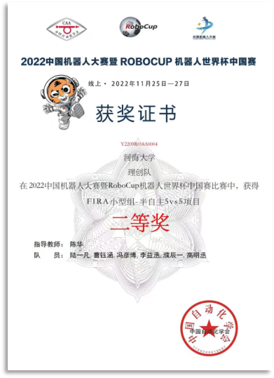 科研需要在试错的过程中不断积累经验,去年寒假她作为队长参加美国大学生数学建模竞赛,获得二等奖;作为第二负责人,团队在一级竞赛2022中国机器人大赛暨 ROBOCUP 机器人世界杯中国赛中取得项目组二等奖的好成绩。根据机器人大赛的经验成果,她作为第一发明人拿到了创新性专利的受理证书;并根据大创团队的选题,以第一作者发表EI论文一篇。