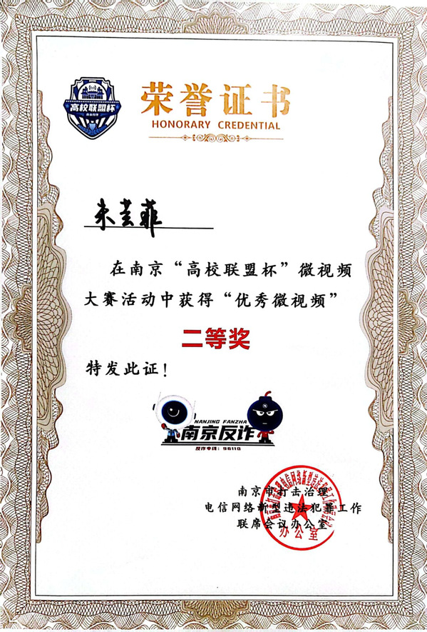 南京“高校联盟杯”微视频大赛“优秀微视频”二等奖,市级