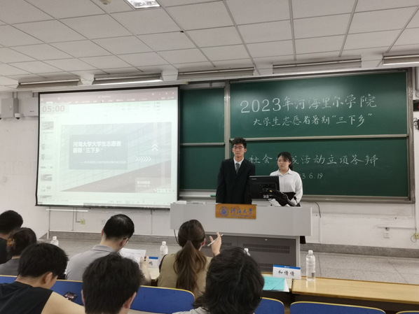 首先,主持人就本次暑期“三下乡”实践要求及活动意义进行了具体介绍,并宣读了答辩注意事项。接着,19支实践团队分别从实践背景、实践方案、团队分工、预期成果、等方面进行了汇报。评委们通过点评和提问的方式帮助各实践团队完善实践计划,丰富实践内容,使他们对需要完成的任务有了更清晰的认识,并对做好“三下乡”暑期社会实践有了更多的信心。答辩结束后,院团委书记谢莹老师对各实践团队的前期工作表示肯定,希望同学们实践过程中注意安全,高质量完成暑期社会实践活动。
