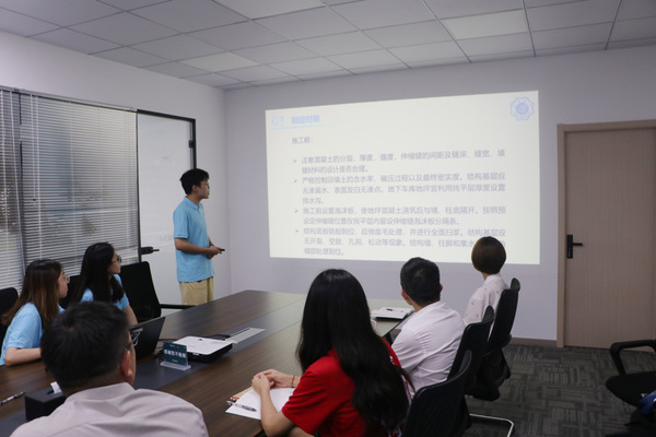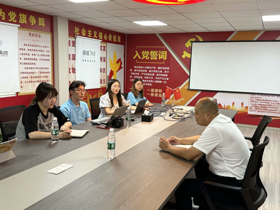 7月24日,实践团与项目群领导及工作人员进行了交流座谈。座谈会上,项目群负责人对我校师生的到访表示了热烈欢迎,并向大家详细介绍了集团的起源发展、业务架构、核心优势以及社会影响;带队老师分别介绍了各自学院的人才培养情况,双方就进一步深化校企合作达成共识。之后,在自由交流环节,双方就“房地产行业的发展形势”“重资产业务与轻资产业务的区别”“代建行业的未来前景”等方面展开深入讨论。