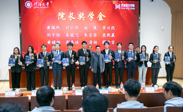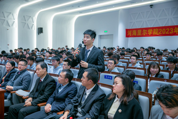 院长奖学金获得者分享了学习和成长感悟。2021级机械工程专业袁熙晨以《日拱一卒无有尽,功不唐捐终入海》为题,讲述了从叠翠山下到长荡湖畔的个人成长故事,这一路虽时有与大神相比的略逊一筹,但他从未妄自菲薄,在持续的坚持中收获了如今的光芒;2022级土木工程专业黄婧雅以《借实干扬帆启航,以笃行丰盈青春》为题,表达了她对多彩大学生活的追求,她可以在专注的课堂学习中守住寂寞,也可以在难度不小的法语世界中寻找快乐,还可以在各式各样的活动里提升自我。无论是学习主业,还是第二课堂,他们都敢于尝试、勇于探索,用端正的态度、积极的心态、科学的策略、持续的努力稳扎稳打,不断进步,以实际行动鼓励同学们秉承河海之志,进而奋发有为。