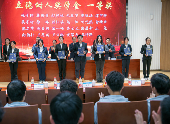 为激励学生刻苦学习、勇于创新、勤于实践,培养爱党报国、敬业奉献的卓越工程师人才,学院特设立专项奖学金,其中包含院长奖学金、立德树人奖学金、实习实践奖学金。刘云副院长宣读获奖名单。在昂扬的音乐声中,与会领导为全体获奖同学颁奖,肯定他们取得的成绩。院长朱其志教授为院长奖学金获得者颁奖,与会领导共同为立德树人奖学金、实习实践奖学金获得者颁奖。