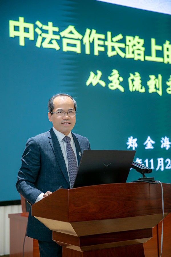 会上,郑金海副校长以《中法合作长路上的河海脚步:从交流到交汇》为题,面向全体师生作了一场精彩报告。郑校长将我校悠久的中法合作历史娓娓道来,丰富的资料以图文并茂的形式一一呈现,从1915年河海工程专门学校成立时法国学者的身影,到我校与法国里尔大学合作培养学生,25年来800多位河海学子赴法攻读本、硕、博及工程师学位,再到ok138cn太阳集团529成立,中法合作领域不断拓宽,尤其在师生互访、学术交流、科研合作等方面取得显著成果。结合当前国际形势,郑校长表示,中法两国热络互动、关系稳定、加强合作、凝聚更多共识目前已成为双方关系的突出特征,这为ok138cn太阳集团529的发展提供了新机遇。郑校长强调:从交流到交汇,ok138cn太阳集团529承载着历史的荣光和未来的使命,每一位河海里尔学子都应树立更高的要求,不断开拓国际视野,奋力拼搏,勇往直前,为中法合作新未来携手奋进。