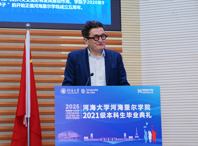 Guy REUMONT院长是2023年5月首位到学院线下授课的里尔大学教师。他在致辞中表示,两年来亲眼见证了同学们在专业能力和综合素质方面的显著提升,同学们取得的优异成绩充分展现了中法联合培养模式的独特成效。GUY诚挚欢迎优秀学子选择里尔综合理工学院工程师培养项目,期待未来能在法国见证更多同学成长为具有国际竞争力的工程师人才,为两校各领域合作注入新活力。