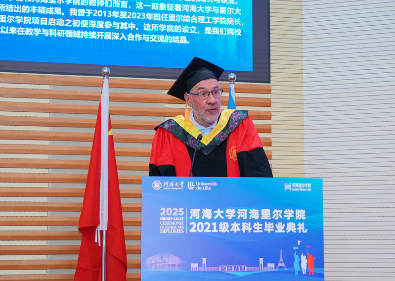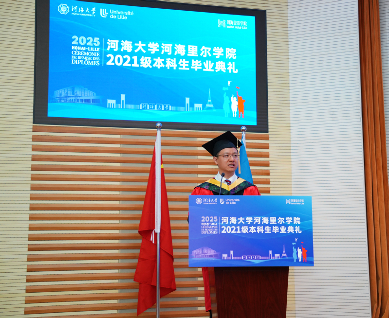 陈达副校长向我院全体毕业生致以热烈祝贺,向学院师生和家长表示衷心感谢。陈校长勉励同学们立鸿鹄志、担时代责,在民族复兴中勇当先锋;经千般磨、砺百般难,在追求卓越中勇挑重担;扎中国根、展世界魂,在全球竞合中勇立潮头。同时,陈校长鼓励同学们传承河海人“天下有溺犹己溺”的精神血脉,将个人发展与国家需求紧密结合,以扎实的专业功底和卓越的创新能力在服务国家战略中贡献河海人的智慧和力量。