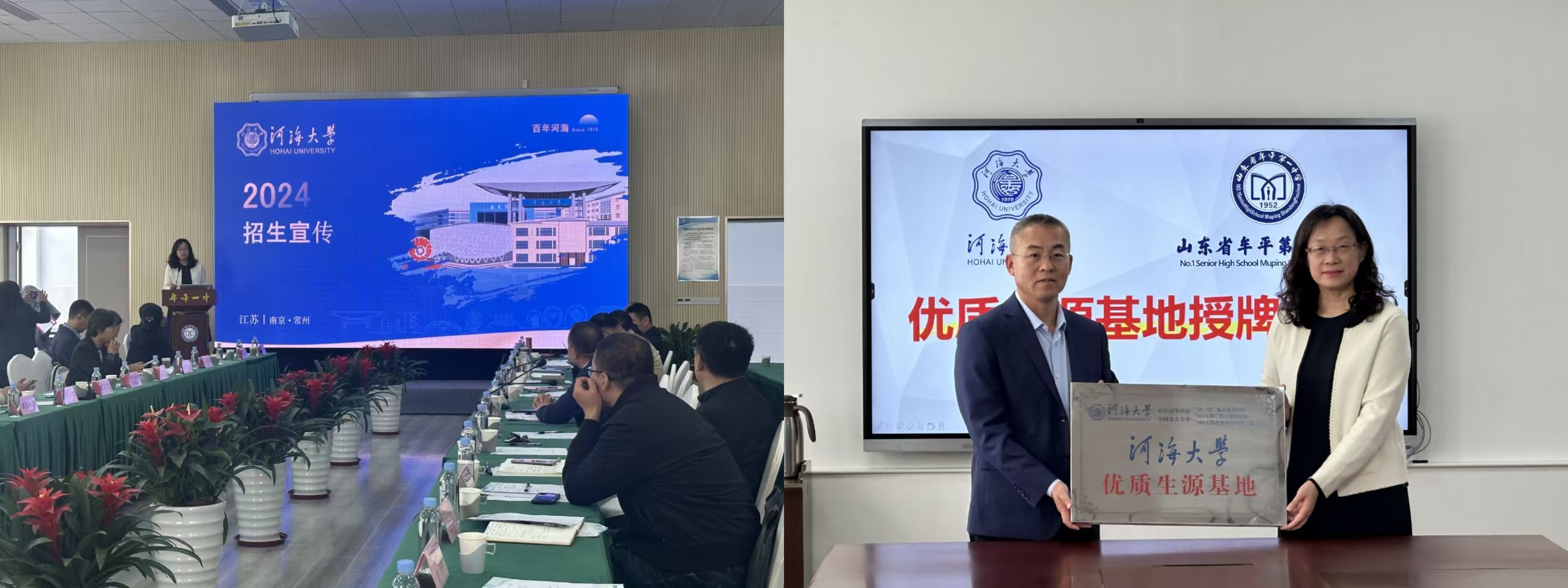 左图:向重点高中校长宣介ok138cn太阳集团 右图:建立牟平一中优质生源基地