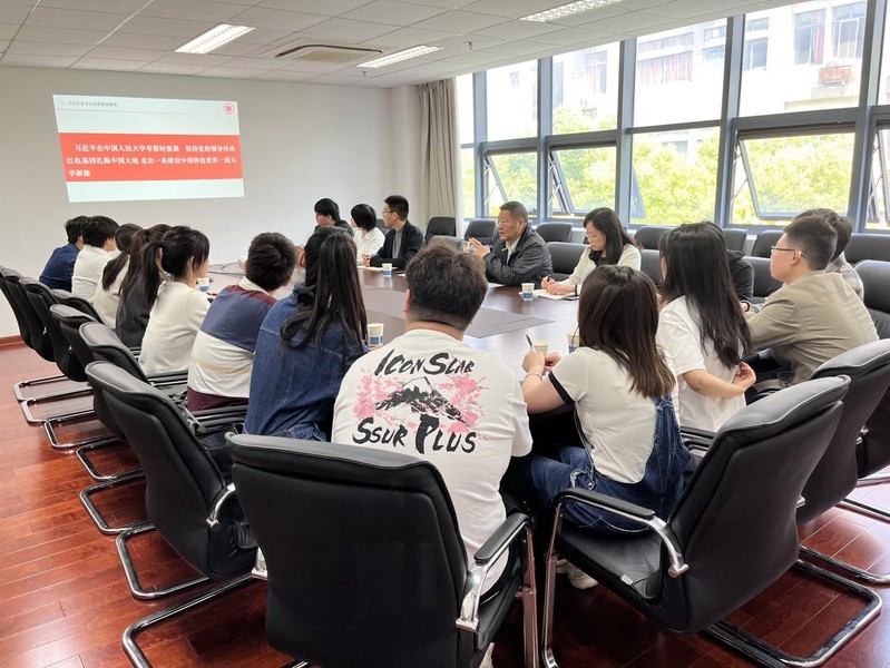 座谈会上,徐校长首先向同学们致以五四青年节的热情问候与美好祝愿。接下来,徐校长以《坚持党的领导,传承红色基因》为主题,带领大家一同学习了习近平总书记在中国人民大学考察时的重要讲话精神。徐校长表示,习近平总书记强调“我国有独特的历史、独特的文化、独特的国情,建设中国特色、世界一流大学不能跟在别人后面依样画葫芦,简单以国外大学作为标准和模式,而是要扎根中国大地,走出一条建设中国特色、世界一流大学的新路。”这为我们指明了方向、提供了根本遵循。作为正在一所“红帽子”大学里接受中外合作办学模式培养的青年学生,更应该坚定不移听党话、跟党走,用实际行动践行“强国有我”的铮铮誓言,努力成长为堪当民族复兴重任的时代新人。