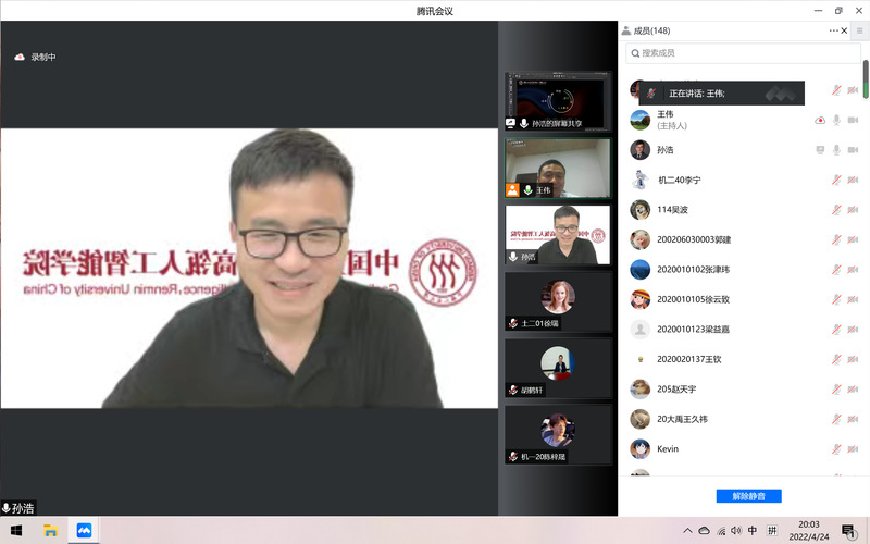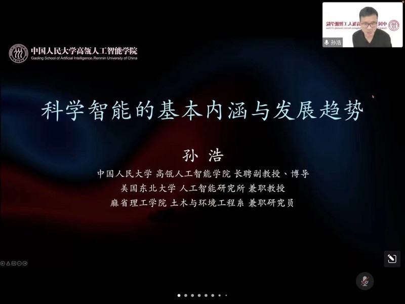 424日晚,河海里尔大讲堂第十二讲通过腾讯会议顺利举办。本次讲座特邀我校校友,中国人民大学高瓴人工智能学院长聘副教授、博导,国家高层次人才青年专家,麻省理工学院兼职研究员,美国东北大学兼职教授孙浩担任主讲嘉宾,为我院师生作了题为“科学智能(AI for Science)的基本内涵与发展趋势”的主题报告。讲座由学院副院长王伟教授主持,学院近两百名师生一同聆听了讲座。