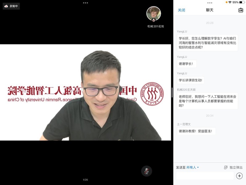 报告结束后,与会师生就自己感兴趣的内容,如“是在什么样的契机下从工程力学方向转至人工智能领域”“数字孪生与智慧水利及智能减灾有没有比较好的结合点”“机械工程、土木工程未来的发展方向”等问题向孙教授请教,孙教授均作了细致、专业的解答。当被问到河海的求学经历对今后的成功有什么作用时,他说,正是河海人身上那股踏实、勤奋、敢闯敢拼、勇夺第一的劲头才让他走了如此之远。同时,他将人生比做马拉松,开始时如果跑的慢不要着急,因为后面很有可能冲上去,所以无论何时,都不要放弃,因为还有机会。