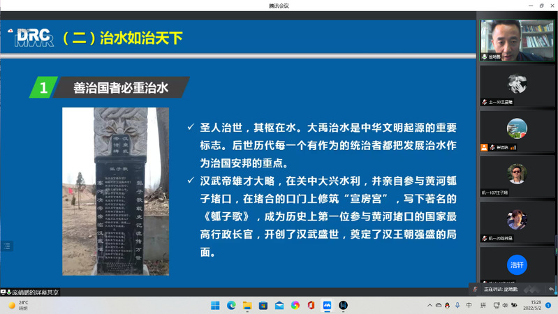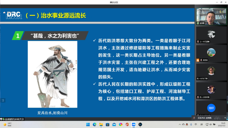 报告中,庞处长分别从“我国基本水情”“我国治水历史”“新中国治水成就”“推动新阶段水利高质量发展”四个部分向大家介绍了我国基本的水情和水利概况,增进了同学们对涉水专业的认识。