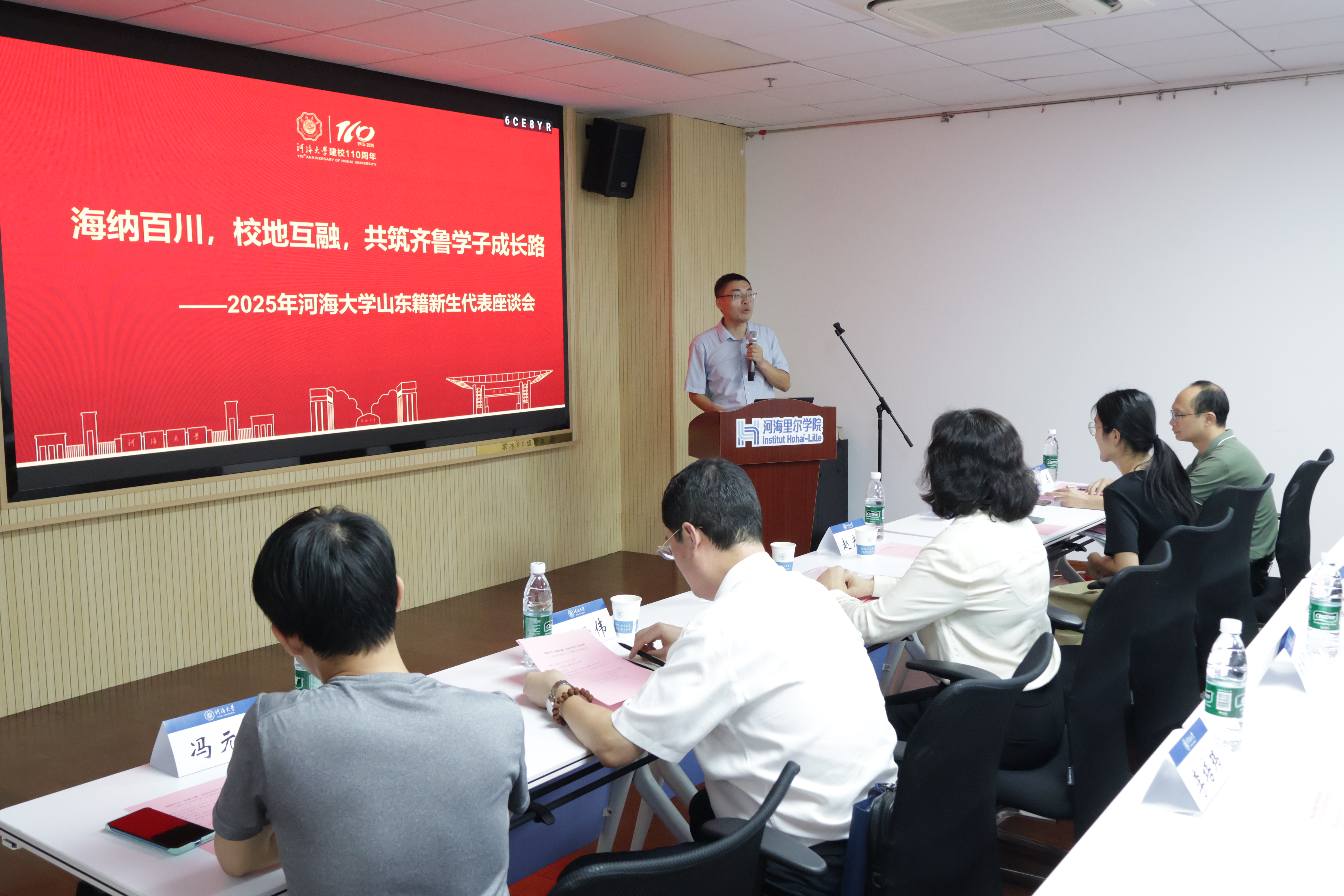 2025年9月28日为助力2025级山东籍本科新生更快融入河海大家庭,顺利开启大学征程我院会同经济与金融学院于ok138cn太阳集团江宁校区行政楼401会议室组织召开海纳百川,校地互融,共筑齐鲁学子成长路”2025年ok138cn太阳集团山东籍新生代表座谈会。ok138cn太阳集团529党委王永芝书记组织员兼研究生辅导员颜庆老师,经济与金融学院党委赵光好副书记、丁云伟老师,学校本科招生办公室冯元晨老师,数学学院俎成霞老师,大禹学院2023本科生王思琪,ok138cn太阳集团5292022级本科生、新生助学导师陶宇泽、李培玮,与全校来自山东省烟台、潍坊、聊城等10个地市18所中学的22名本科新生代表面对面交流,现场气氛热烈。会议由赵光好副书记主持。